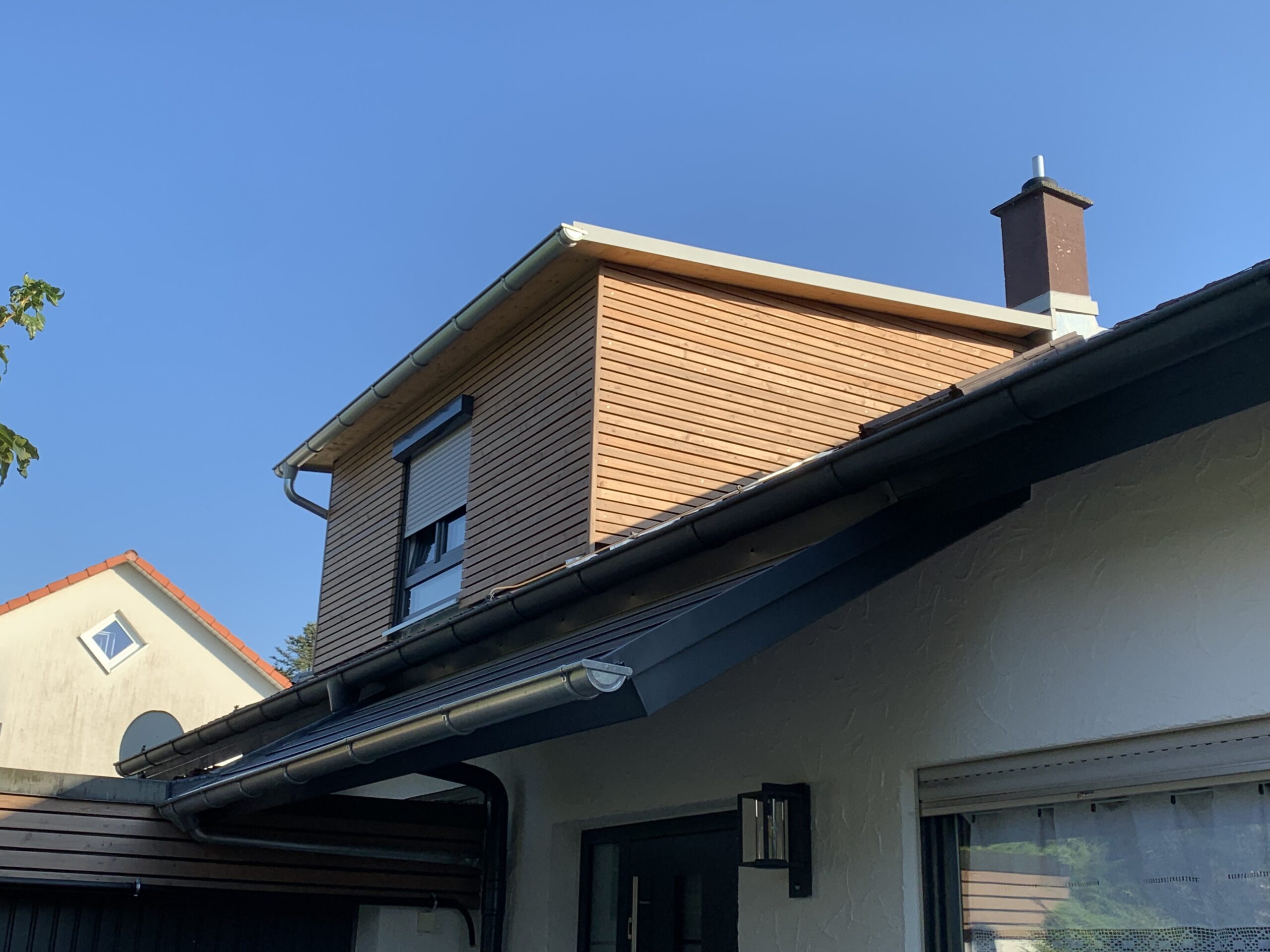 Dachgaube S Mehr Raum im Dachgeschoss | Blechfalzdach | Rhombusfassade vorvergraut | Balkon | Vordach